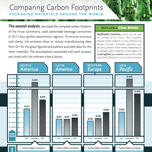 Data produced by the world's largest glass maker Owens Illinois suggests that a refillable glass bottle has a 95% lower carbon emission profile than one that is produced again with recycled glass. And better still it saves money
